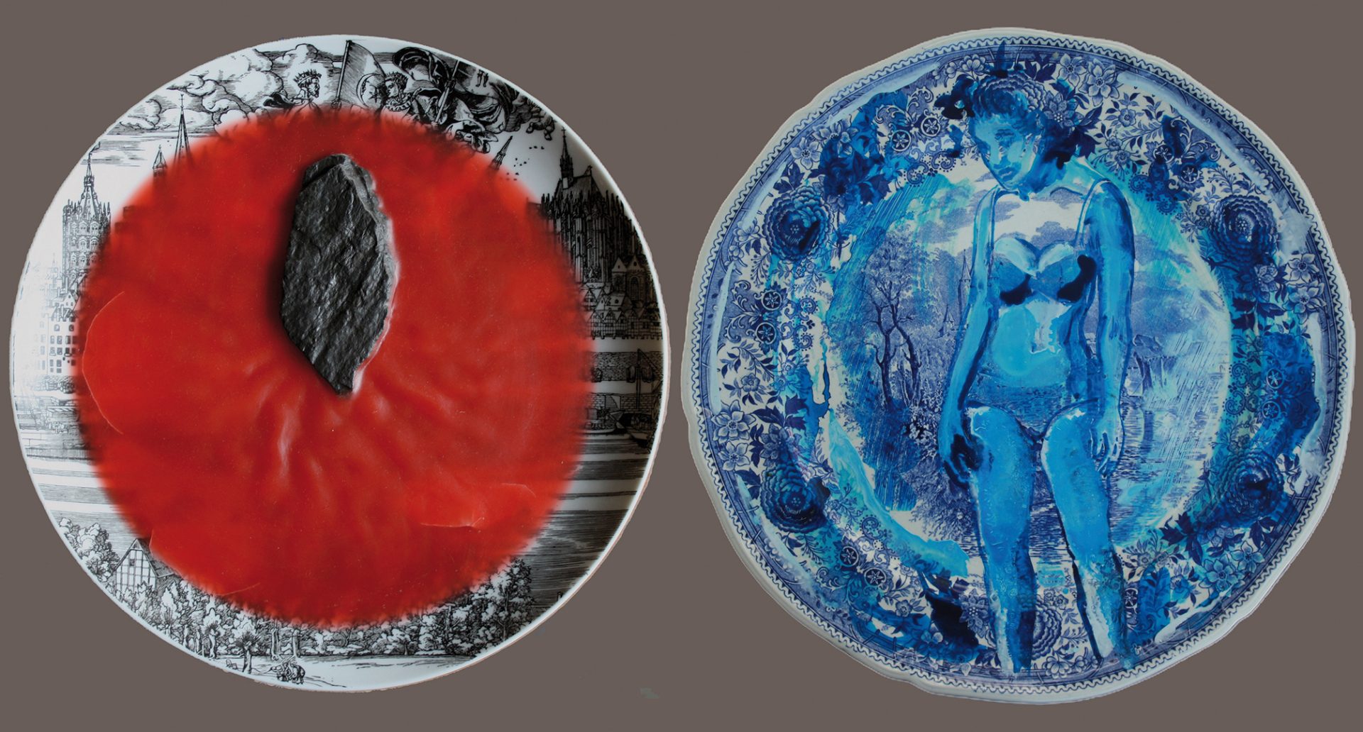 Der Kölner Künstler Martin Warnke erklärt ganz gewöhnliche Teller, wie wir sie in unseren Schränken verwahren und täglich nutzen, zu seiner Leinwand. Er geht collagenartig mit den gegebenen Dekors um und fügt Malereien, Zeichnungen oder Fotos hinzu. So gelingen ihm Kunstwerke, die über die Dekoration hinausweisen und erstaunlich eindeutig zum Spiegel unserer Zeit werden.